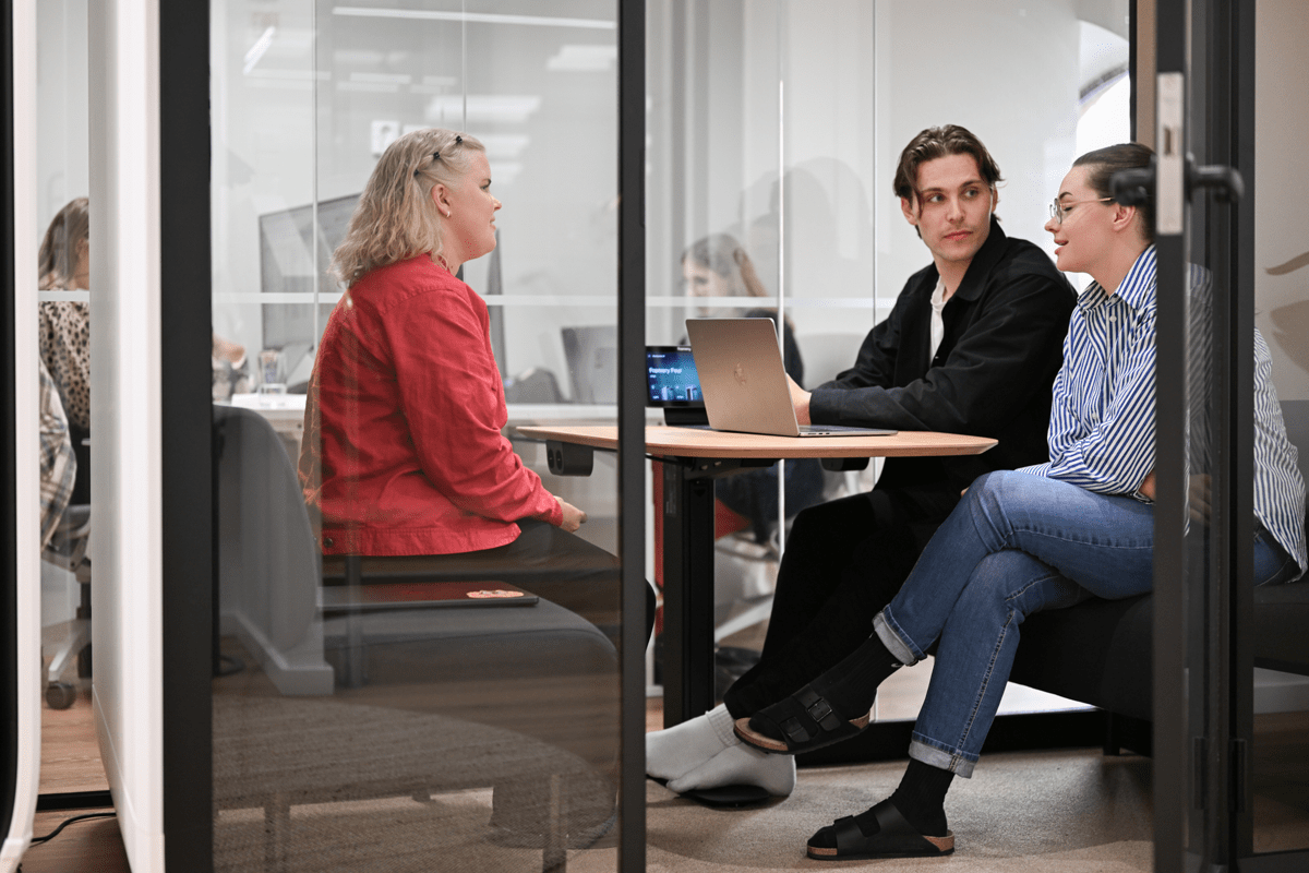 Vältämme kankeita ja turhia prosesseja ja tähtäämme sujuvaan, mutkattomaan ja ratkaisuihin keskittyvään työarkeen. Kun duunissa on mukavaa, tuloksetkin ovat parempia.